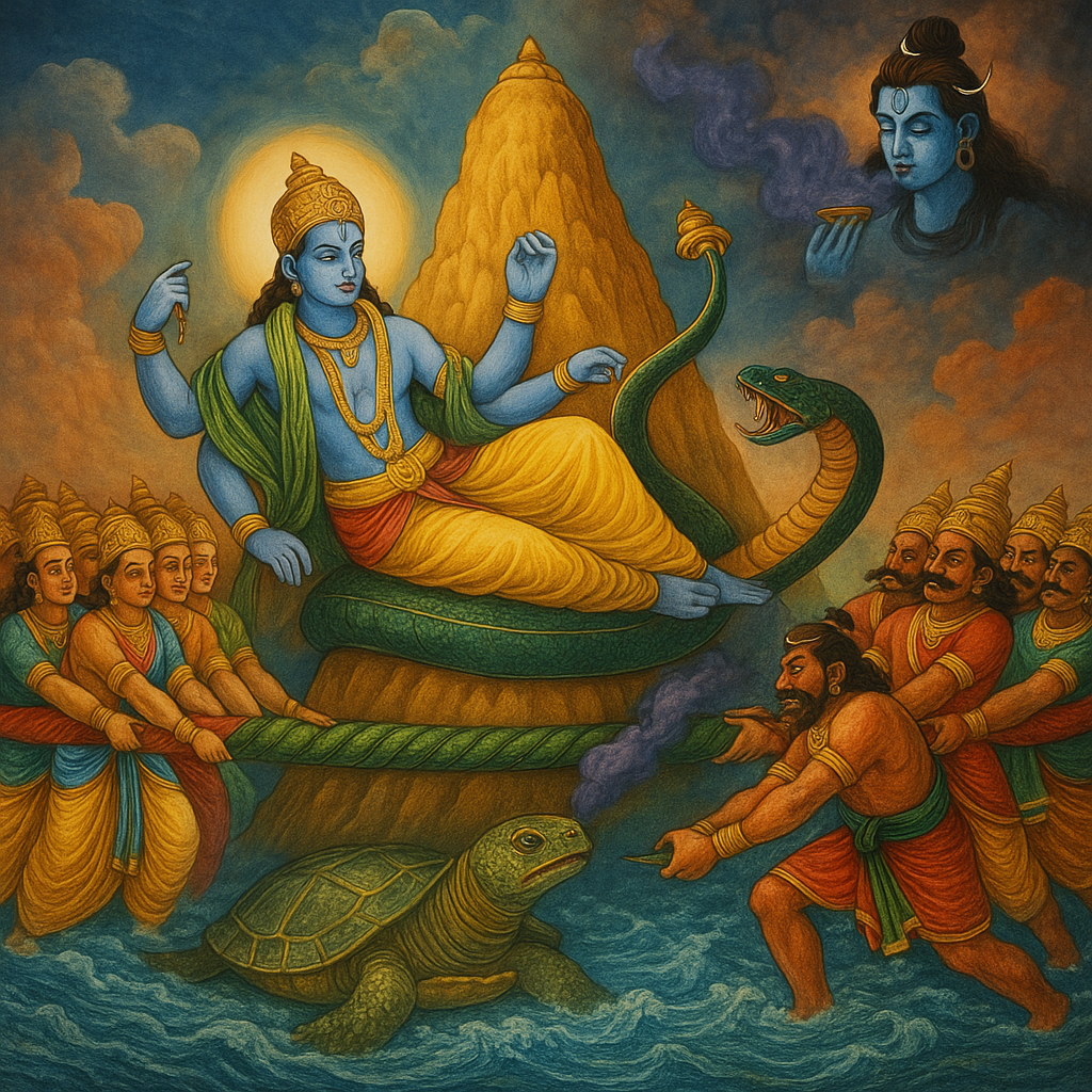 Great myths are not stories of what happened once to gods and demons; they are maps of what happens eternally within the human soul. Our journey together has now led us to one of the most epic of these maps: the Samudra Manthan, the Churning of the Ocean of Milk.